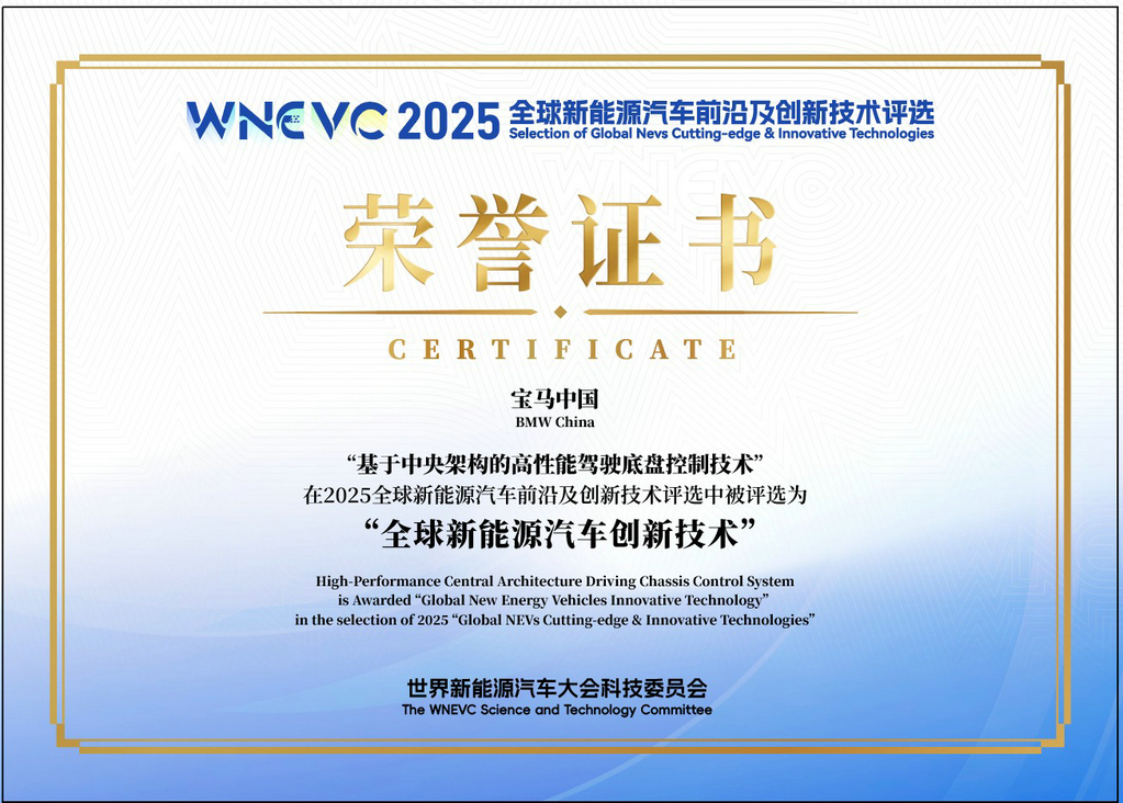 9月28日,在2025世界新能源汽车大会上,宝马自主研发的“基于中央架构的高性能驾驶底盘控制技术”配资盘股票配资网,即新世代“驾控超级大脑”荣获“全球新能源汽车创新技术”证书。这也是宝马集团第五次在该大会上获评,同时也是唯一连续四年获得该证书的外资车企。